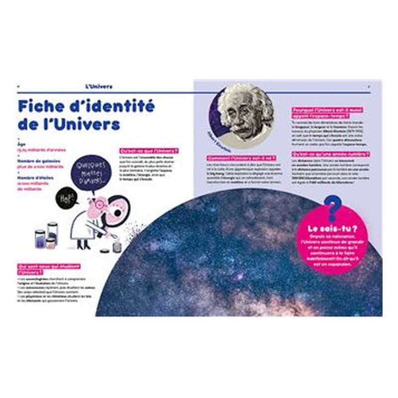 Peut-on détecter des formes de vie extraterrestes ? Pourquoi le ciel est-il bleu ? Ces réponses et plus de 1000 autres sont dans ce livre ! 7 thématiques : l’Univers, la Terre, la vie, le développement durable, le corps humain, les sciences et les techniques et l’Histoire.Pour chaque sujet, des questions/réponses ludiques accompagnées d’illustrations et de photos, des pages d’expériences et des quiz ! Dimensions : 22,50 x 28,00 x 2,80 cm