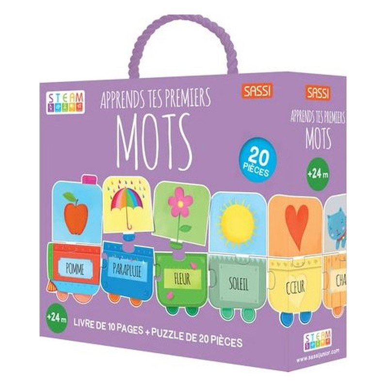 Un livre de 10 pages et un puzzle de 20 pièces géantes pour créer un petit train et apprendre les lettres de l’alphabet. Contenu : Un livre de 10 pages et un puzzle de 20 pièces