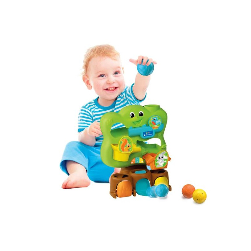 Un arbre magique avec des toboggans, des balles et des portes pour amuser les tout-petits. Les trois balles, chacune de taille différente, roulent à l’intérieur de l’arbre et, comme par magie, se retrouvent derrière la porte correspondant à leur couleur. Idéal pour développer les compétences manuelles, la coordination œil-main et la pensée logique. Fabriqué en Italie. Dimensions : 27 x 24 x 11.5 cm