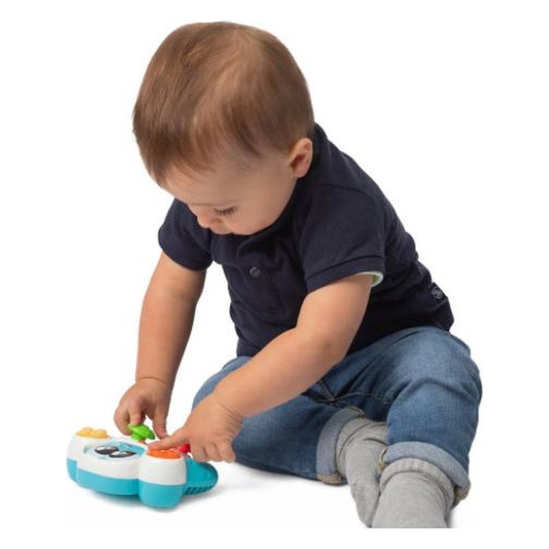 Ma première manette de jeu est le premier jouet idéal pour permettre à votre bébé de jouer avec sa propre manette de façon amusante et divertissante. Allumez le jouet en sélectionnant le volume et appuyez sur l’un des 2 boutons électroniques pour activer les lumières, les mélodies et pour écouter de vrais sons de jeu ! La manette bébé a aussi 2 joysticks pour faire semblant de jouer comme les grands ! Sa forme et ses petites dimensions en font un produit parfait pour les petites mains des bébés, il aide à développer les capacités de coordination manuelle et il est vraiment facile à transporter !