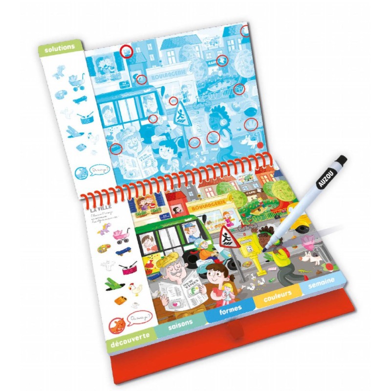 5 thématiques quotidiennes à l’école maternelle : découverte, saisons, formes, couleurs, semaine. Inclus stylo feutre Dimensions : 23,5 x 20,5 cm