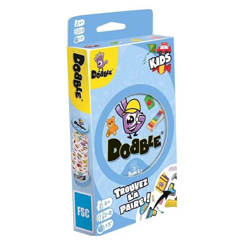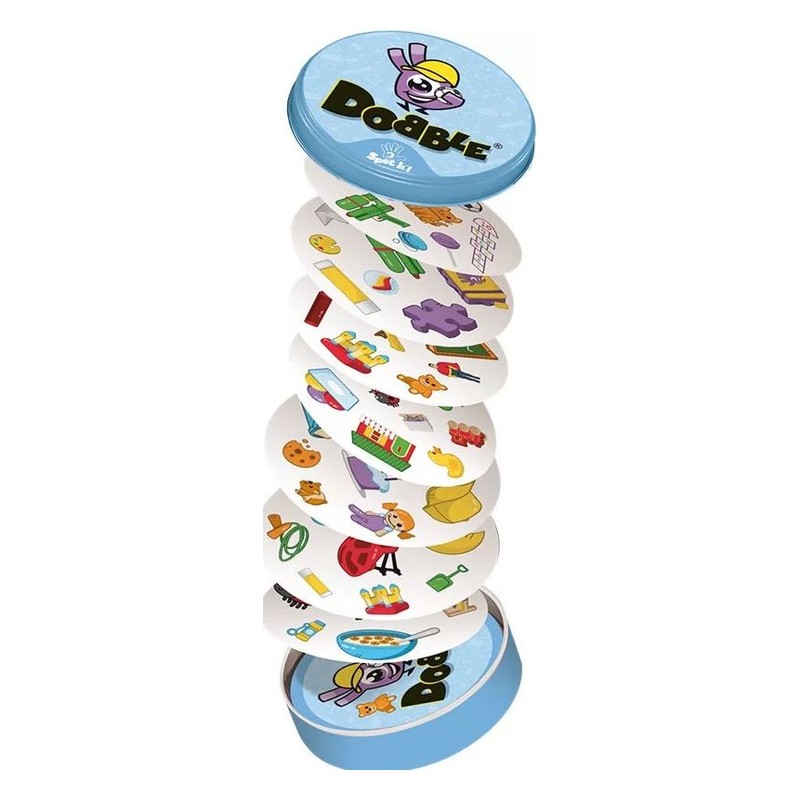 Dobble respecte l’environnement ! 1 boîte, 5 jeux : c’est aussi le Dobble pour les plus petits ! Repérez vite l’unique symbole en commun entre les cartes et, selon la règle du jeu en cours, remportez la partie ! Grâce à des règles claires, assimilées en l’espace d’une minute, Dobble, c’est l’assurance d’une ambiance folle…