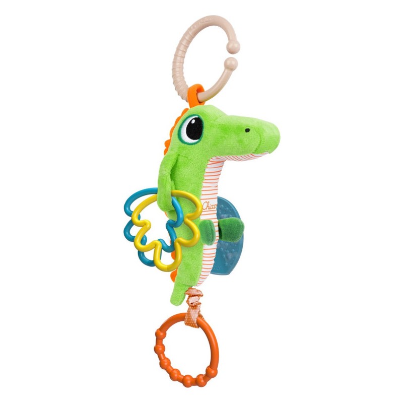 Un crocodile amusant en tissu avec un effet surprenant : tirer sur la poignée pour activer la vibration. Avec un système de crochets pratique, facile à fixer sur les landaus, les poussettes ou les sièges de voiture. Il offre de nombreuses stimulations à bébé : 2 feuilles en plastique dur, l’effet de vibration et une feuille transparente avec des mini balles à l’intérieur. Le Crocodile vibrant stimule les premières découvertes : tenez-le et secouez-le pour produire un mouvement et un effet sonore.