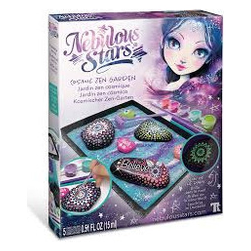 Voici 2 activités classiques rassemblées en un nouveau concept original : la peinture sur galets et le jardin zen japonais. Muni d’un grand plateau, de sable coloré et d’un mini râteau pour créer chaque jour des effets de galaxie différents. Décore 3 galets avec des transferts à frotter phosphorescents et de la peinture acrylique. Contenu…