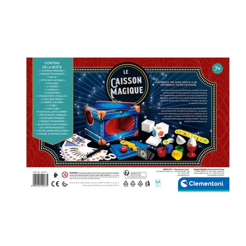 Un coffret très riche permettant de réaliser un spectacle de magie complet ! L’enfant pourra choisir les tours qu’il souhaite réaliser parmi 80 tours très faciles à exécuter ! Et pour le clou du spectacle : une grande illusion ! Le petit magicien fera disparaître son bras à l’intérieur d’un caisson magique pourtant ouvert et…