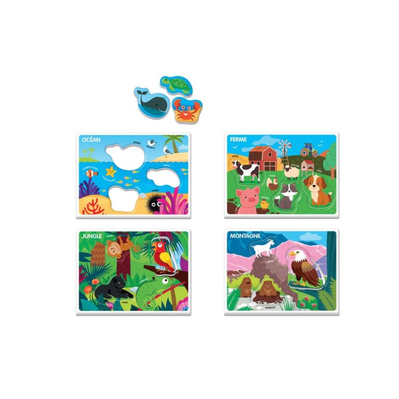 Un jeu pour découvrir les animaux et leur habitat, avec de jolies illustrations colorées. L’enfant devra insérer les animaux dans les planches correspondantes selon l’environnement dans lequel ils vivent. Soutient le développement cognitif et linguistique et exerce la pensée logique. Découvrez toute la gamme de jeux éducatifs Clementoni conçus pour toutes les étapes du développement…