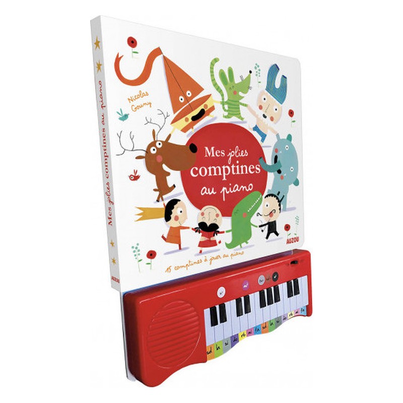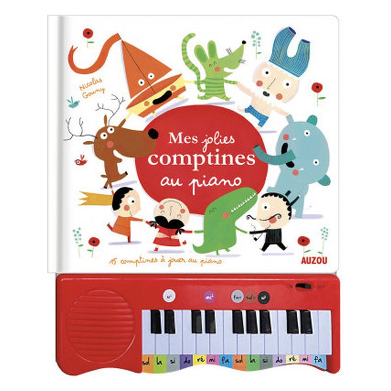 15 Comptine connues des enfants : « Le bon roi Dagobert », « Pirouette, cacahuète », « J’ai du bon tabac », « Dans sa maison, un grand cerf », « Ah, les crocodiles ! », « Ah ! vous dirai-je, Maman », « Lundi matin, l’empereur », « Maman, les p’tits bateaux », « À la pêche aux moules », « Gentil coquelicot », « Promenons-nous dans les bois », « La mère Michel », « V’là l’bon vent », « En passant par la Lorraine », « Aux marches du palais ». Contenu : • Piano plastique intégré • Tout-carton • 32 pages