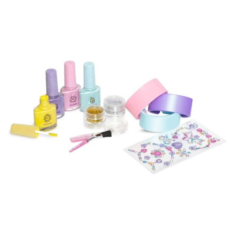 LOT D’ONGLES ET DE BRACELETS SUPER FILLE par MARTINELIA Faites ressortir votre côté le plus créatif avec ce pack Super Girl. Il contient tout le nécessaire pour que les plus petits les plus audacieux puissent laisser libre cours à leur imagination en créant les designs les plus spectaculaires . Contenu : 3 bracelets à décorer avec des paillettes, des autocollants et des pierres brillantes, super ! Et pour assortir vos ongles, 4 vernis aux couleurs les plus vives. Devenez une vraie Super Girl ! Parfait comme cadeau, il ravira toutes les petites dames. Dimensions du produit : W32 x H21,5 x D5,7 cm
