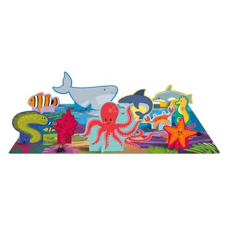 Une boîte aux détails irisés contenant un livre de 10 pages, un puzzle de 40 pièces et 10 figurines en forme à assembler et à placer sur le puzzle, pour apprendre à reconnaître et à associer des éléments et des mots.Découvrez les habitants de la mer ! Feuilletez le livret, construisez le puzzle et apprenez à reconnaître les nombreuses créatures, des plus grandes aux plus petites, qui peuplent les mers et les océans Contenu Un puzzle de 40 pièces et un livre de 10 pages Dimensions : 18,5 x 18,5 x 9 cm