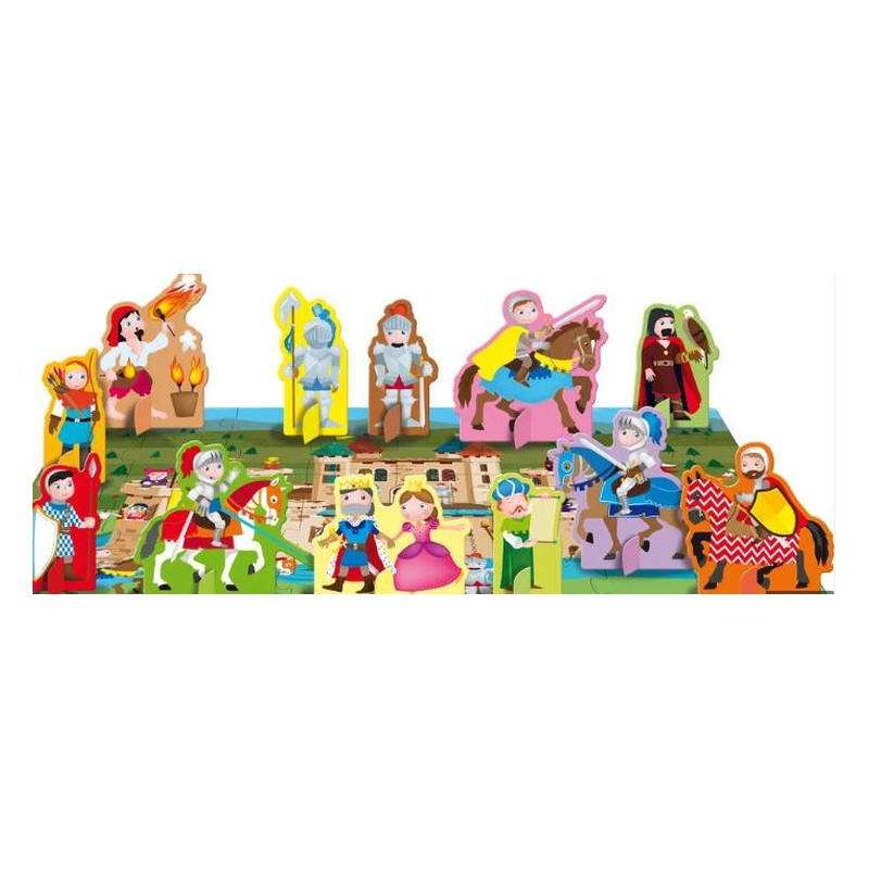 Le château des chevaliers Une boîte aux détails irisés contenant un livre de 10 pages, un puzzle de 40 pièces et 12 figurines en forme à assembler et à placer sur le puzzle, pour apprendre à reconnaître et à associer des éléments et des mots. Contenu Un puzzle de 40 pièces et un livre de 10 pages – 12 figurines prédécoupées Dimensions : 18,5 x 18,5 x 9 cm
