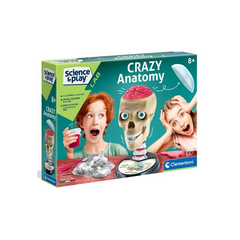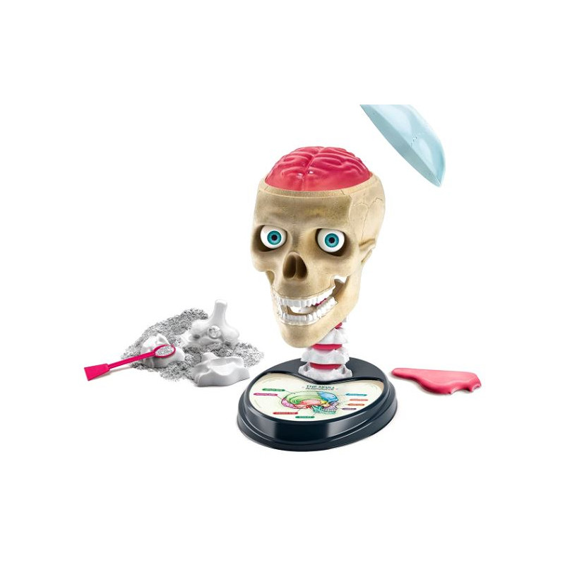 Un jeu qui aborde un sujet scientifique de manière ludique et pétillante, en transformant la complexité de l’anatomie en une expérience ludique stimulante et amusante. Les matériaux choisis allient sensation de réalisme et sécurité. Toutes les substances incluses dans le kit sont vérifiées et certifiées pour éviter des réactions dangereuses au contact de la peau et des yeux. Un crâne à assembler, deux hémisphères cérébraux, des dents et des globes oculaires, de nombreux éléments à toucher et à manipuler comme s’il s’agissait de véritables organes, pour une expérience de jeu ultra réaliste. Suivez les aventures d’un scientifique fou dans une histoire prenante et apprenez de nombreuses faits scientifiques grâce au manuel illustré. Tous les composants et substances de nos ensembles de jeu sont soumis à des contrôles et des tests rigoureux pour certifier leur qualité, afin de garantir une expérience de jeu sûre et amusante. Dimensions : 35 x 26 x 7 cm