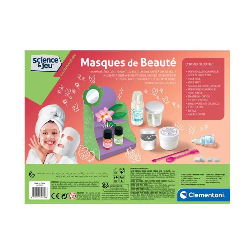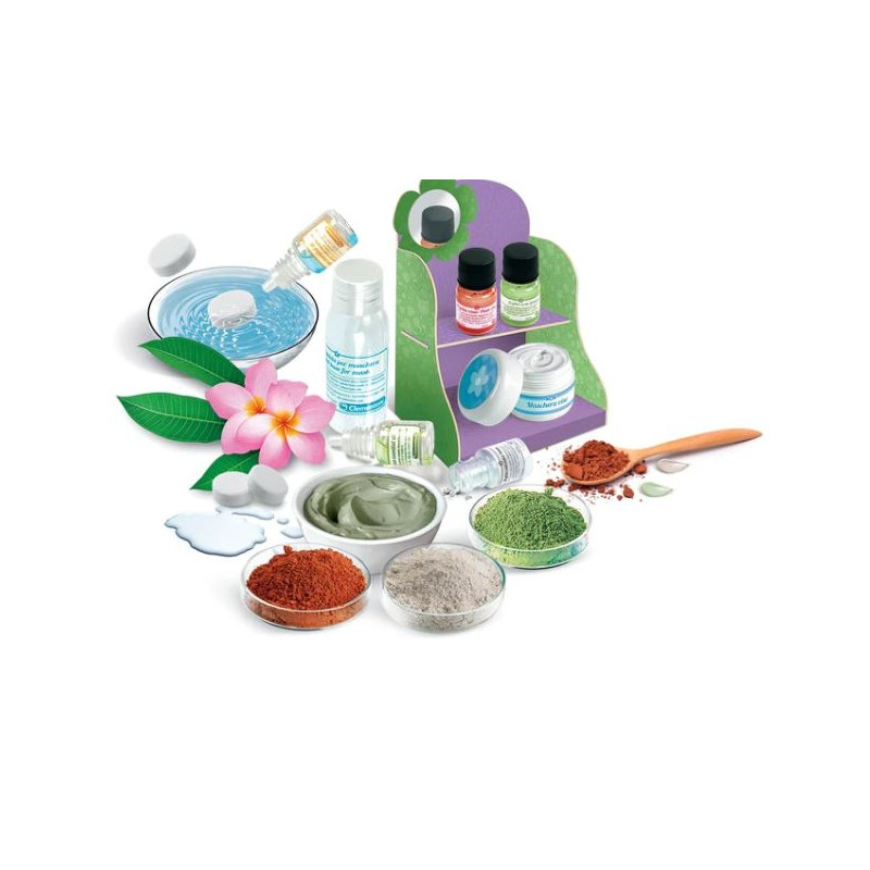 Un coffret scientifique original et amusant pour créer des masques de beauté naturels et doux. Le coffret contient tous les ingrédients nécessaires à la préparation de véritables masques de beauté, tels que de l’argile verte, de l’argile rose et un arôme. Le jeu comprend également des masques en tissu compressé pour une application apaisante, rafraîchissante…