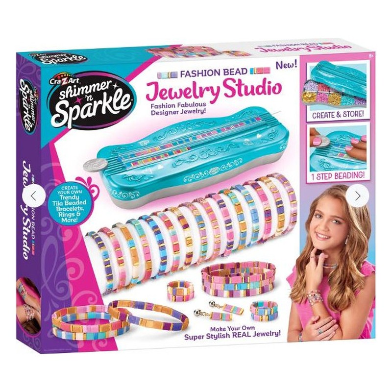 Le nouveau studio de bijoux en perles tendance de Shimmer n Sparkle ! Créez vos propres bijoux en perles tendance ! Le kit totalement tendance qui vous permet de créer vos propres bracelets, bagues et plus encore en perles Tila ! L’enfileur spécial rend le perlage aussi simple que 1-2-3 ! Choisissez vos perles, enfilez…