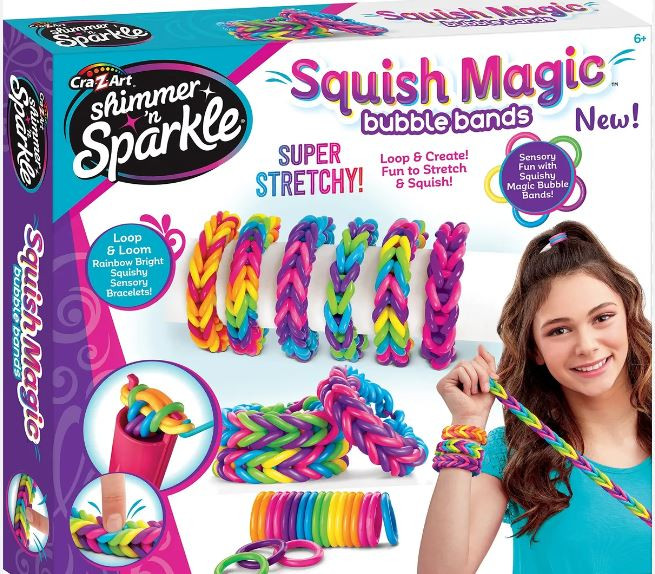 Les Shimmer ‘n Sparkle Squish Magic Bubble Bands offrent une activité créative amusante. Idéal pour développer la motricité fine et l’imagination des enfants.