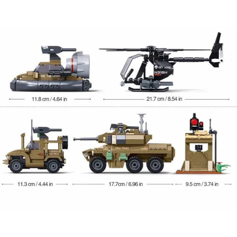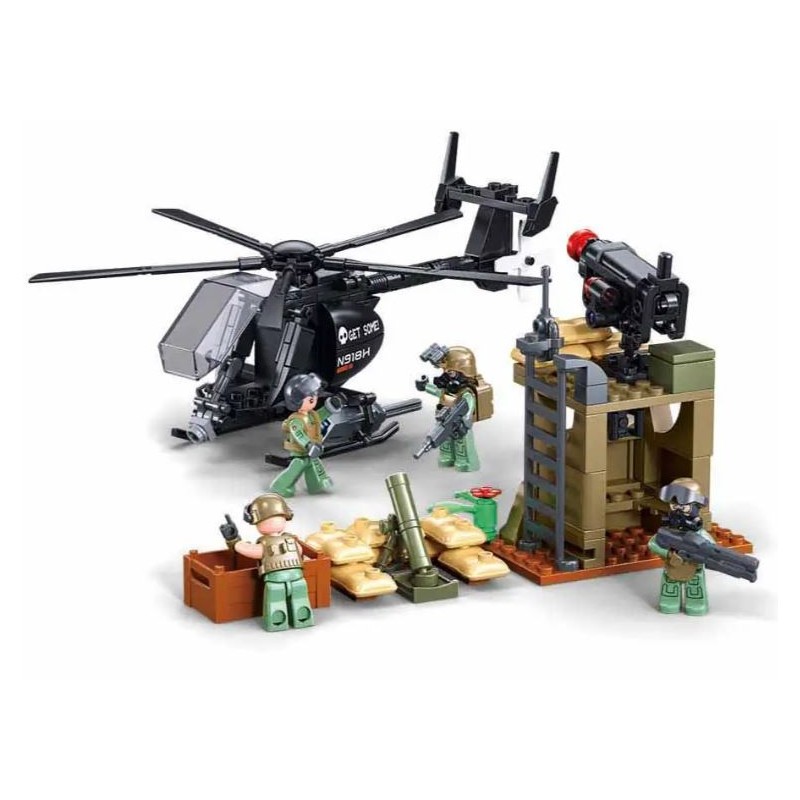 Jeu de construction d’excellente qualité et 100% compatible avec La marque Lego Véhicules de combat de l’armée Sluban – Ensemble de construction de 744 pièces avec 7 figurines et fonction de tir Vivez des missions militaires passionnantes avec l’ensemble de construction Sluban Army Joint Assault A. Cet ensemble polyvalent contient pas moins de quatre véhicules de combat reconnaissables et sept figurines de soldats qui, ensemble, garantissent des heures de jeu stratégique amusant. Que vous lanciez une attaque en hélicoptère, que vous positionniez un véhicule blindé ou que vous capturiez une base ennemie avec la jeep et l’aéroglisseur, cet ensemble offre des possibilités de jeu infinies. L’hélicoptère s’inspire de l’emblématique AH-6 Little Bird, connu pour sa maniabilité rapide et son utilisation dans les opérations spéciales. La Jeep présente une ressemblance évidente avec le Humvee, le robuste cheval de bataille des armées modernes. La voiture blindée à six roues rappelle le Stryker, un véhicule de combat mobile et lourdement blindé. L’aéroglisseur compact est un clin d’œil ludique aux véhicules d’assaut amphibies. Cet ensemble Sluban se distingue par des détails réalistes, des roues fonctionnelles et un mécanisme de tir sur les tourelles de canon, permettant aux enfants de simuler une action réelle. Les sept figurines uniques sont équipées de différents casques, armures et armes, donnant vie au jeu de rôle et aux scénarios imaginatifs. Spécifications : Hélicoptère de combat (longueur 21,7 cm) Aéroglisseur (longueur 11,8 cm) Véhicule blindé avec tourelle rotative (longueur 17,7 cm) Jeep militaire avec système de missiles lancables (longueur 11,3 cm) Poste d’observation avec canons défensifs (hauteur 9,5 cm) Canons jouets avec fonction de tir Contenu 744 pièces Dimensions : 52 x 38 x 8 cm