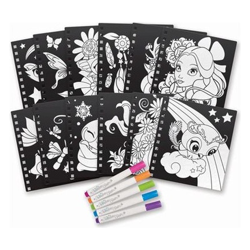 Au lieu de simplement peindre sur du papier, les petits artistes peuvent utiliser le carnet de croquis pour dessiner des pages de velours magiques sur du velours doux. Colorie simplement l’une des 12 images et laisse les beaux motifs devenir visibles. Contenu : Comprend 6 mini marqueurs, des instructions et des notes sur les personnages. Dimensions : 16 x 21,7 x 2