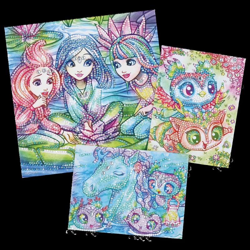 Crée deux chefs-d’œuvre en strass éblouissants! Colle des micro-strass avec l’applicateur spécial sur des modèles pré-encollés. Suis les nombres associés à chaque couleur. Le résultat final est étonnant! Contenu : 3 cartes imprimées prêtes à décorer 4500+ strass Stylo applicateur de strass Plateau strass et carré de cire Instructions de couleur Dimensions : 22,22 x 27,94 x 4,44 cm