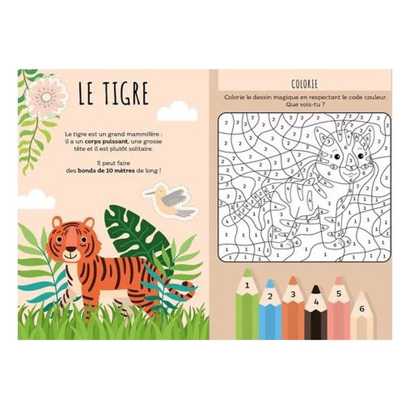 Le célèbre jeu des 7 familles présenté dans une version parfaite pour les petits et dans une variante encore plus amusante ! 44 cartes à jouer illustrées d’animaux de la jungle et rassemblées dans un étui pratique, accompagnées d’un livre de 16 pages rempli d’activités et de 40 autocollants. Contenu : 16 pages Dimensions : 21 x 16 x 4,5 cm