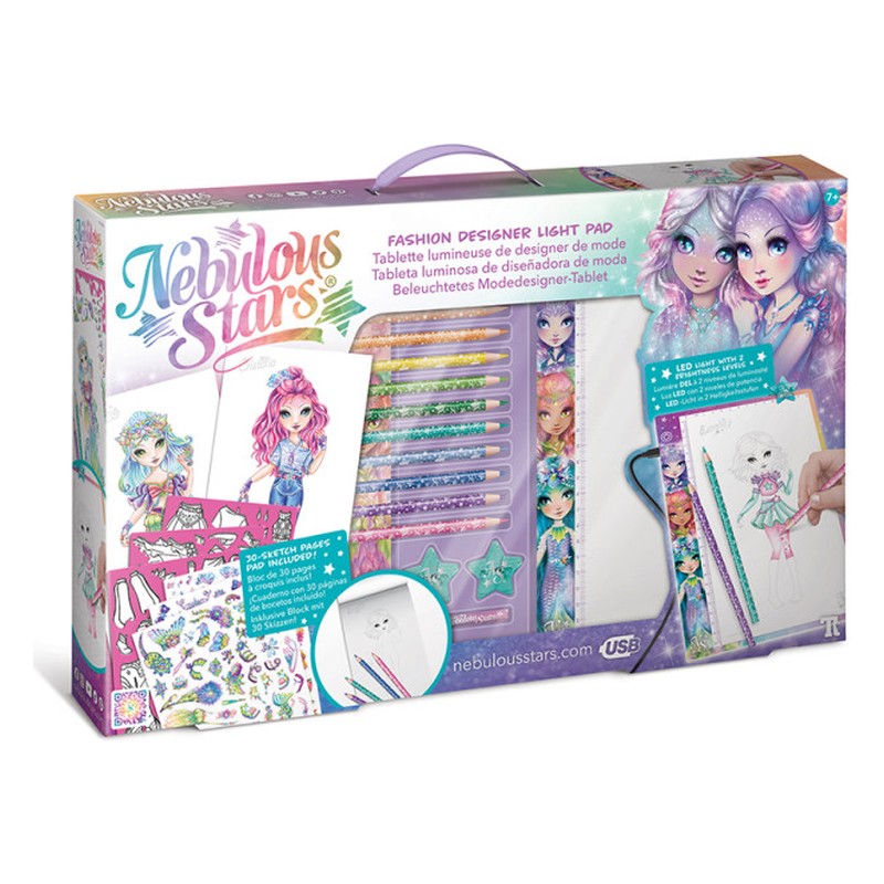 Donnez une nouvelle dimension à vos créations vestimentaires avec la tablette lumineuse Nebulous Stars ! Utilisez les pochoirs et les modèles de traçage pour créer des garde-robes époustouflantes pour vos stars préférées. Extrêmement fine (seulement 5 mm) et légère, cette tablette est portable, élégante et pratique. Dimensions : 18,1 cm x 27,3 cm x 0,5 cm. Contenu : Tablette ultra-mince et légère câble USB 10 crayons de couleur Crayon carnet de croquis de 30 pages 6 pages d’exemples de modèles 3 feuilles de pochoirs 3 feuilles d’autocollants 2 trombones Instructions de couleur