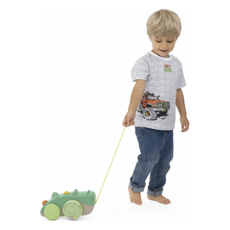 Un crocodile amusant conçu pour encourager bébé à marcher. En tirant sur la ficelle, le Croco bougera de façon amusante en faisant bouger son corps et ses crêtes de haut en bas. Tirez sur la ficelle pour entendre le tintement et voir les perles colorées bouger à l’intérieur des roues. Il développe les capacités psychomotrices…