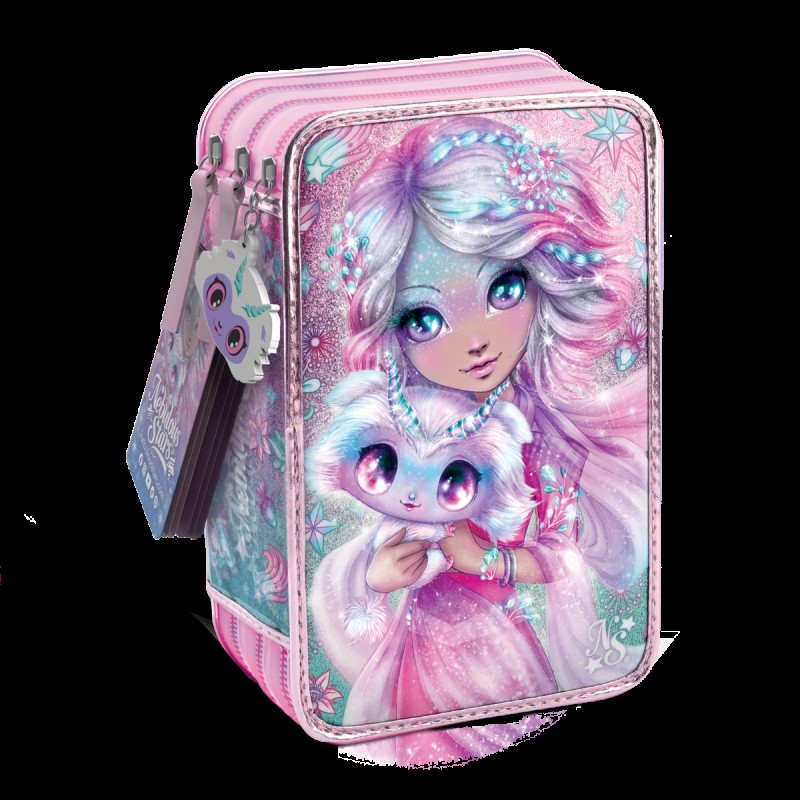 L’ensemble comprend une trousse avec des ustensiles d’écriture : crayons de couleur, feutres, gomme, taille-crayon, règle, crayon ordinaire, stylo, ciseaux. La trousse est très spacieuse et possède trois compartiments. La fermeture éclair est dotée de grands et beaux pendentifs. Dimensions :14 x 20,5 x 7,5 cm Un cadeau idéal pour les enfants qui aiment la…