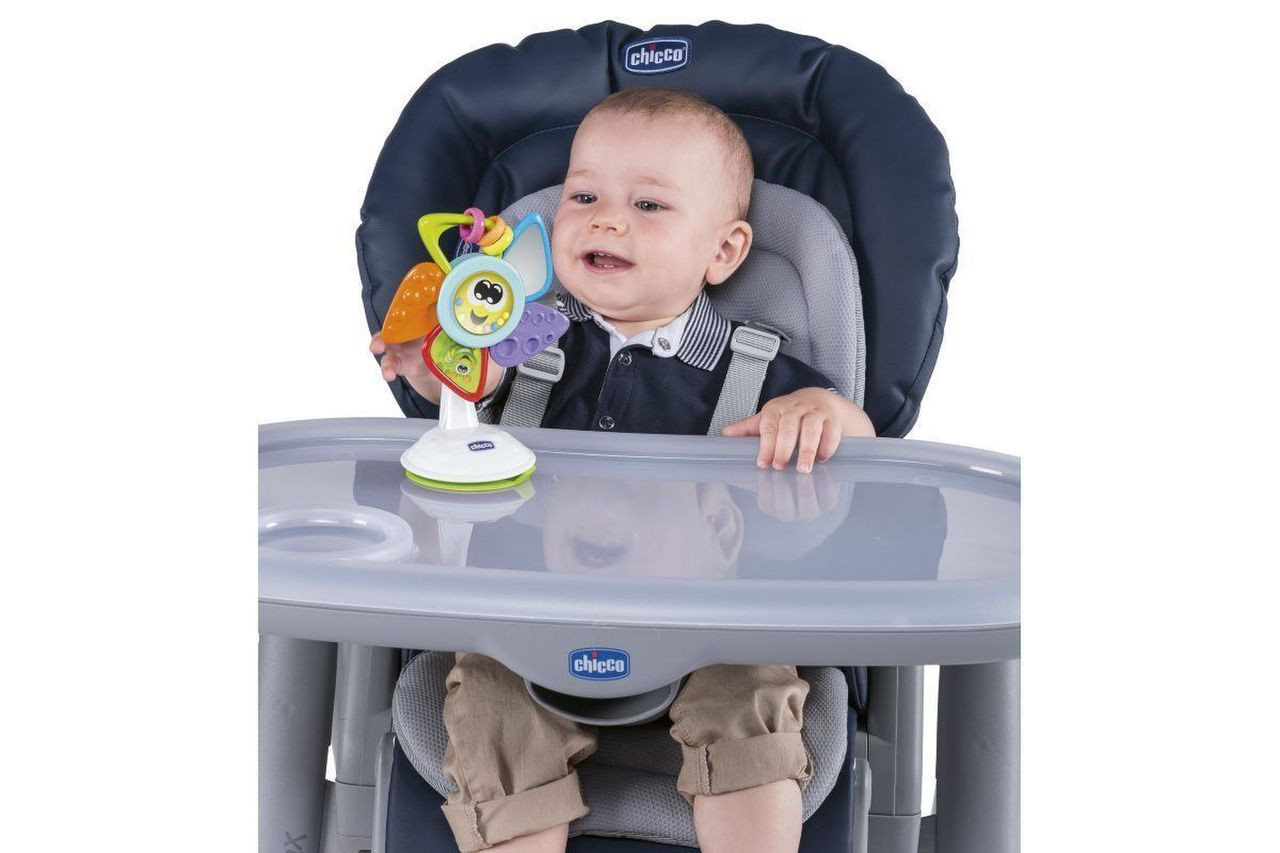 Le Will the Pinwheel de Chicco est un jouet d’éveil particulièrement conçu pour les chaises hautes, offrant une multitude d’activités adaptées aux bébés dès 6 mois. Avec ses pétales colorés, ce jeu stimule la vision et le toucher tout en favorisant le développement moteur. Les différents éléments, tels qu’un anneau de dentition texturé, un miroir et des hochets, permettent d’apaiser les gencives de votre enfant tout en développant sa coordination main-œil.