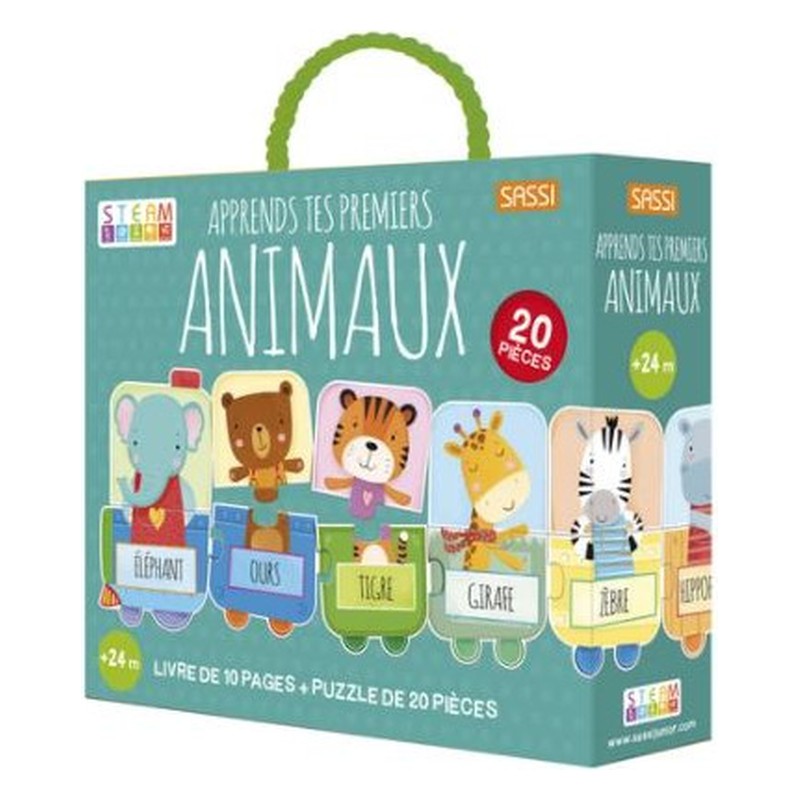 Un livre et puzzle avec 10 pièces géantes pour s’amuser à créer ton petit train des animaux. Contenu : Un livre de 10 pages et un puzzle de 20 pièces