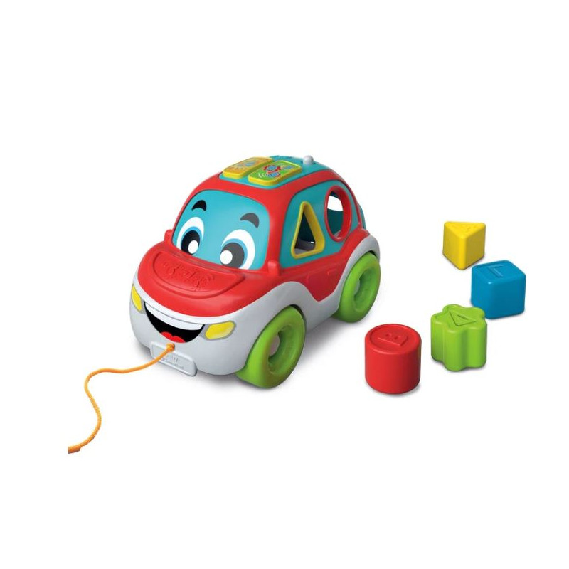 Une voiture trieur de formes amusante, parlante, interactive et à tirer grâce à sa cordelette. Un jeu éducatif 3 en 1 qui apprend à l’enfant le nom des formes, des couleurs et les premières lettres. Encouragé par des effets sonores, l’enfant pourra perfectionner ses compétences manuelles avec l’activité de tri. Le coffre de la voiture peut être ouvert pour récupérer les formes. Un jouet fabriqué en Italie avec des matériaux sûrs et de qualité. Dimensions : 32 x 21 x 16 cm
