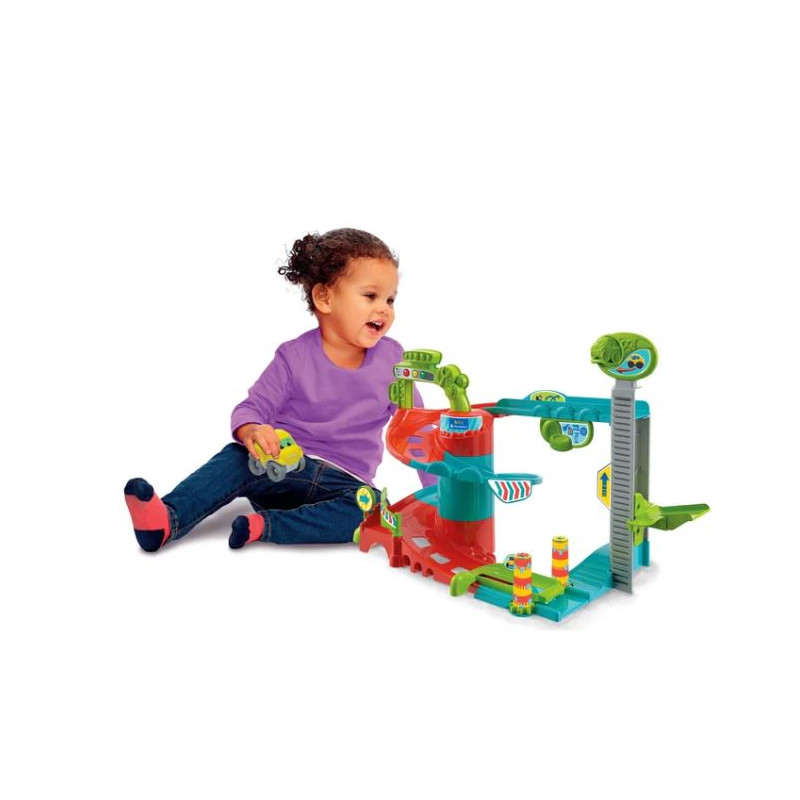 Une caserne de pompiers avec une piste pour que les véhicules de secours puissent filer et passer à travers les deux zones de “culbutes” ! La voiture dévale la piste et, grâce à un levier, fait des culbutes amusantes sur son parcours. Les activités mécaniques sont conçues pour développer la dextérité et la perception tactile des plus petits. L’ensemble fait partie de la gamme Voitures-Culbutos, composée de différents véhicules à collectionner ! Dimensions : 38.2 x 29 x 10 cm
