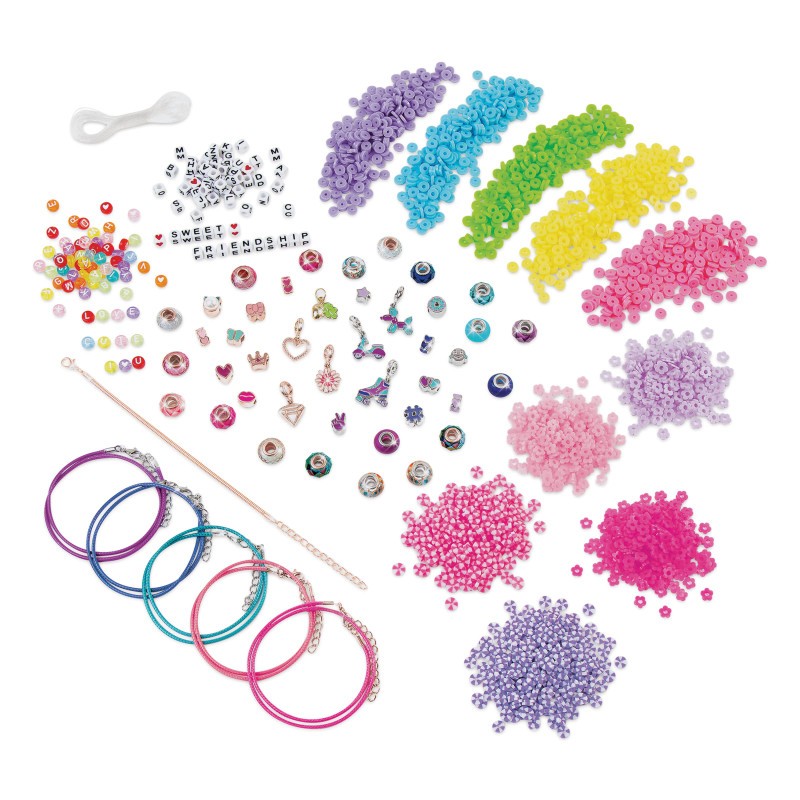 KIT DE CRÉATION DE BRACELETS POLYVALENT : Créez plus de 30 bracelets uniques en utilisant une variété de matériaux, notamment des cordons, des chaînes, des pendentifs assortis et plus de 2 100 perles. Le kit propose des breloques halo, des perles heishi et des perles alphabet pour des possibilités de personnalisation. ATTRAIT MODE TENDANCE : Création de bracelets DIY au top de la mode ! Ce kit permet aux jeunes fashionistas d’exprimer leur style unique à travers des créations de bijoux personnalisées. Possibilités créatives infinies. Encourage la créativité et l’expression de soi. MIX & MATCH : Comprend un plateau de jeu pour une organisation facile des perles et la création de motifs, ce qui rend le bricolage organisé et agréable. Avec un large éventail de perles et de breloques, les enfants peuvent mélanger et assortir pour créer des bracelets qui reflètent leur personnalité et leur humeur. AVANTAGES ÉDUCATIFS : Améliore la motricité fine et favorise la créativité chez les préadolescents de 8 ans et plus. L’assemblage de bracelets d’amitié favorise la patience, la concentration et l’exploration artistique. Encourage la créativité et l’expression de soi.