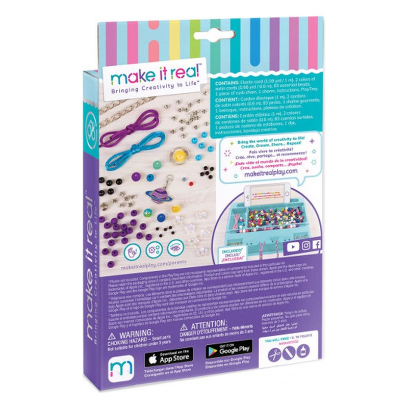 Les créateurs de bracelets en herbe peuvent commencer avec ce kit de bracelets à bricolage. Mélangez et assortissez l’assortiment de perles pour créer jusqu’à 3 magnifiques bracelets. Contenu : – Cordon élastique (1 m) -2 couleurs de cordons en satin (0,6 m) – 83 perles assorties – 1 morceau de chaîne gourmette – 1 charm – mode d’emploi – PlayTray