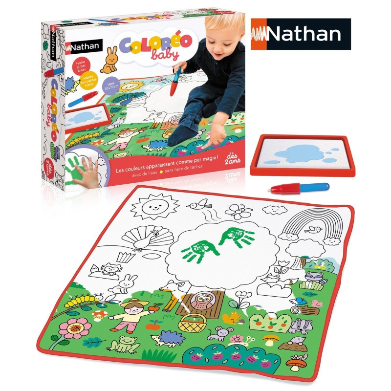 Colorier, c’est magique avec Coloréo ! Le bébé peint avec de l’eau pour faire apparaître les couleurs. Une activité créative sans se tacher qui stimule sa curiosité. Un magnifique tapis, un feutre à eau et une petite bassine adaptés aux petites mains. Colorier et peindre avec ses doigts sans taches Dimensions : 35x25x7
