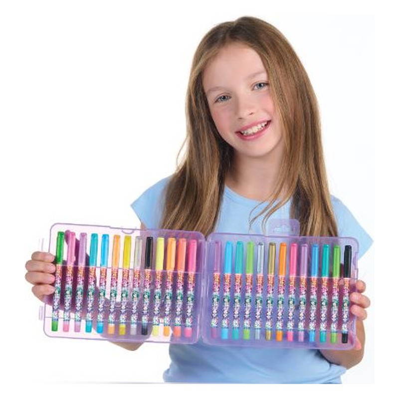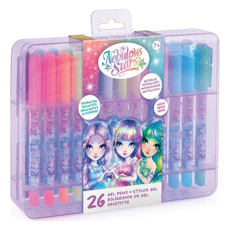 Personne n’a jamais assez de stylos-gels ! Parfaits comme recharges ou simplement parce que vous aimez les stylos-gels. Disponibles en couleurs néon et métalliques assorties. Contenu : 9 stylos-gels à encre pailletée 8 stylos-gels à encre métallique 8 stylos-gels à encre néon 1 stylo-gel à encre noire Étui de rangement Dimensions : 21,7 x 16 x 3,7 cm