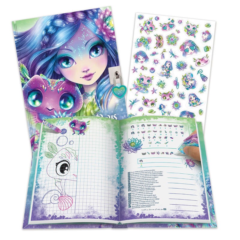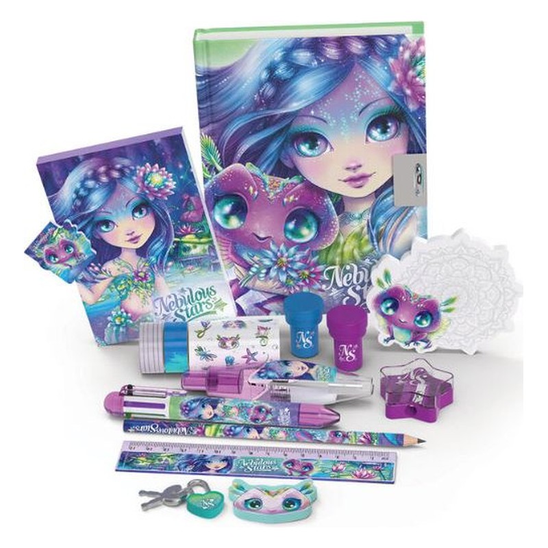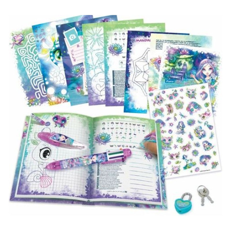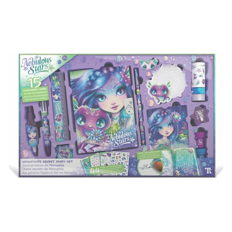 Voici l’ensemble idéal pour commencer ton superbe nouveau journal intime. Il comprend tout ce dont tu as besoin, comme le stylo à 6 couleurs, un stylo applicateur de motifs, une règle, une gomme, du ruban adhésif décoratif, et bien sûr un cadenas et sa clé pour garder tes secrets!Stylo-bille à 6 couleursApplicateur de motifsCarnet d’activités et de coloriageGomme à collectionnerTaille-crayonRègleMarque-pages aimantéRouleau d’autocollantsCrayon40 notes adhésives2 rouleaux de ruban adhésif Washi2 tampons auto-encreursLe journal intime de 200 pages inclut :L’histoire complète de Nenuphia44 pages d’activités amusantesPage d’autocollants