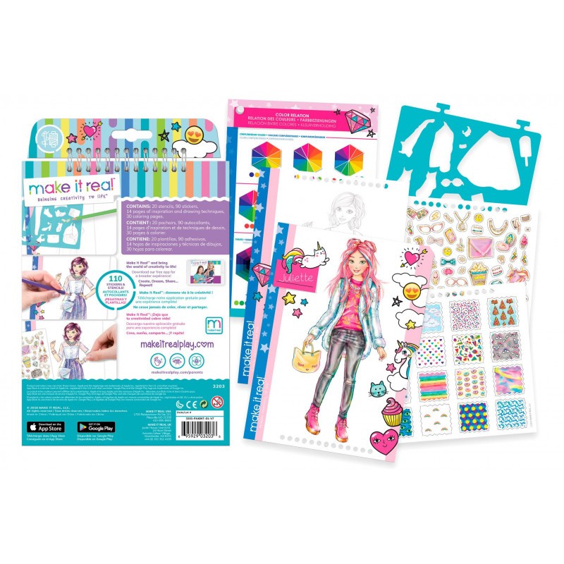 Les jeunes illustrateurs et créateurs de mode peuvent commencer avec ce carnet de croquis unique. Il a tout, des pochoirs et des pages à colorier à un guide de conception complet et à des tonnes d’autocollants accessoires. Contenu – 20 pochoirs – 90 autocollants – 14 pages d’inspiration et de techniques de dessin – 30 pages à colorier