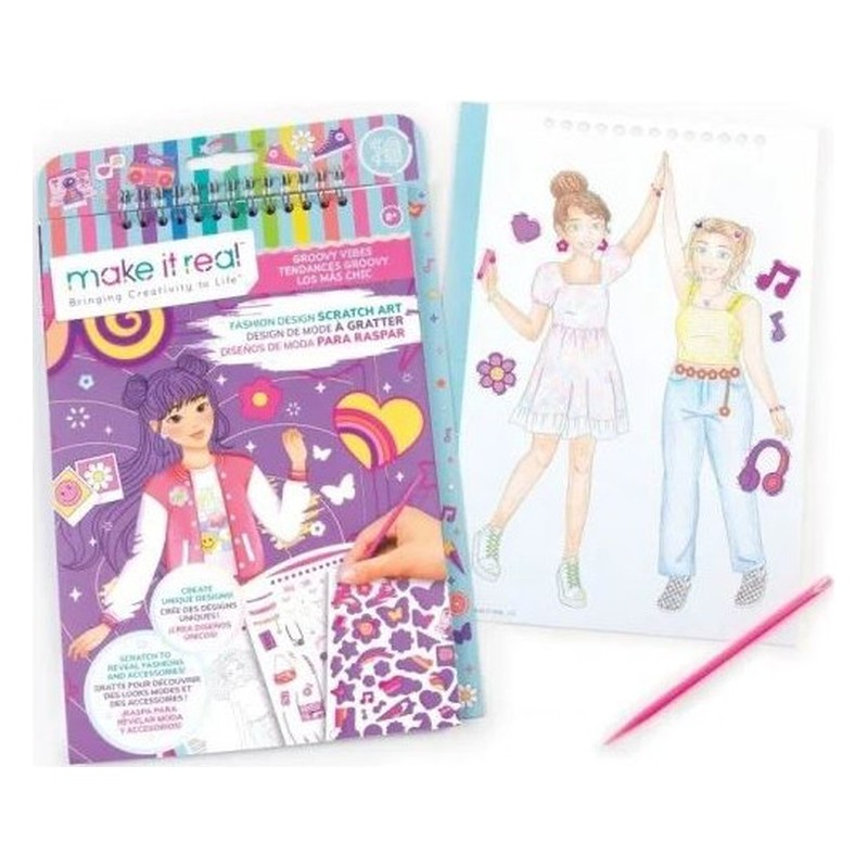 Qui n’aime pas l’art du grattage et la mode ? Make it Real a combiné les deux pour une explosion créative ! Grattez pour révéler l’impression sous-jacente afin de personnaliser les modèles de mode. Les pages à colorier traditionnelles avec des personnages de mode complètent le plaisir pour une expérience totalement personnalisée. Comprend un stylo…