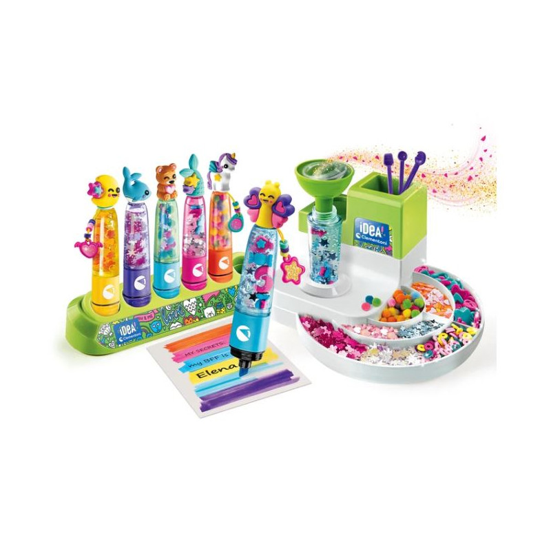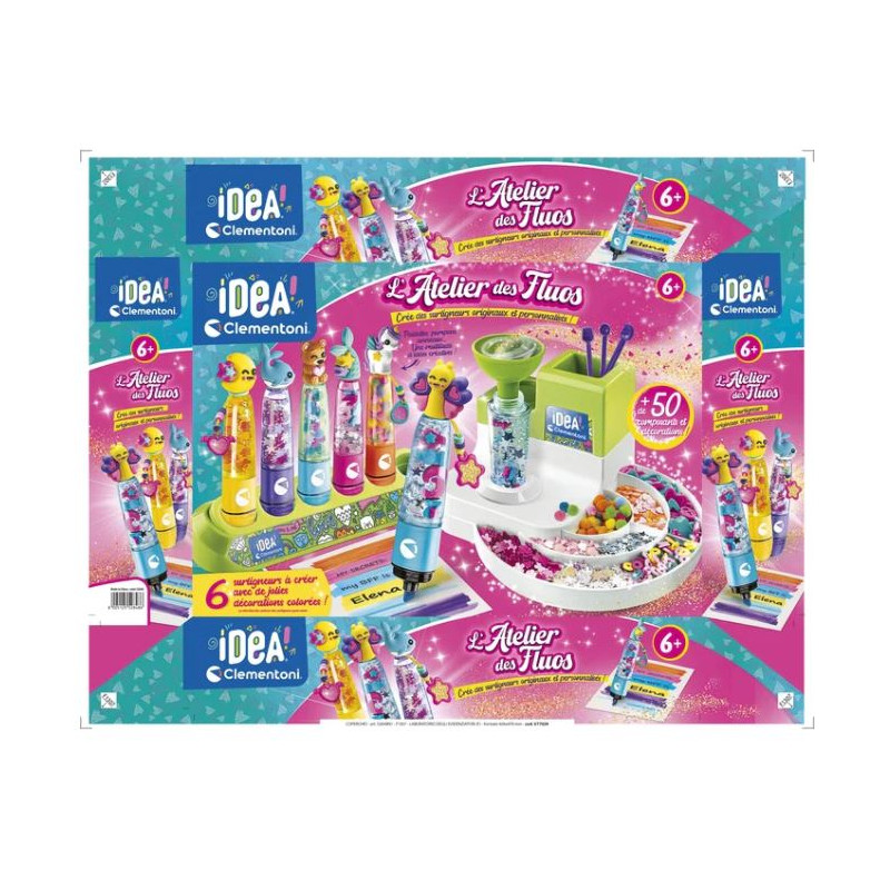 Un atelier créatif original pour s’amuser à créer plein de fluos colorés et personnalisés ! Le coffret contient 6 fluos à assembler, des encres de couleurs différentes, des personnages et tous les accessoires pour les décorer. Le coffret contient une base pratique pour réaliser facilement tes créations, un entonnoir, des embouts, de l’encre, des personnages,…