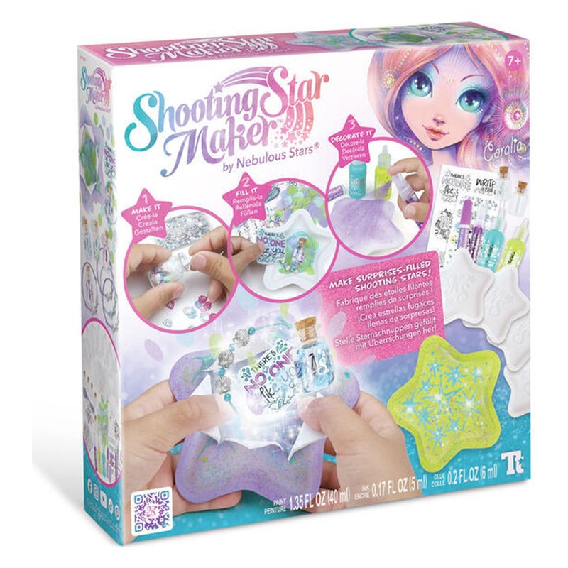 Fabrique des étoiles filantes dans lesquelles tu auras placé un mot inspirant dans une bouteille et un petit cadeau. Offre-les ensuite à tes proches pour ainsi leur transmettre des ondes positives et un peu de bonheur! Choisissez un message inspirant, réalisez un joli bracelet, puis insérez-le dans une étoile remplie de confettis. Utilisez le Shooting Star Maker pour le sceller et le décorer. Enfin, offrez votre étoile à la personne de votre choix. En l’ouvrant, ils découvriront la merveilleuse surprise que vous avez conçue spécialement pour eux. Vous aurez autant de plaisir à fabriquer vos étoiles filantes qu’à les offrir en cadeau ! Dimensions : 24,8 x 24,8 x 6,4