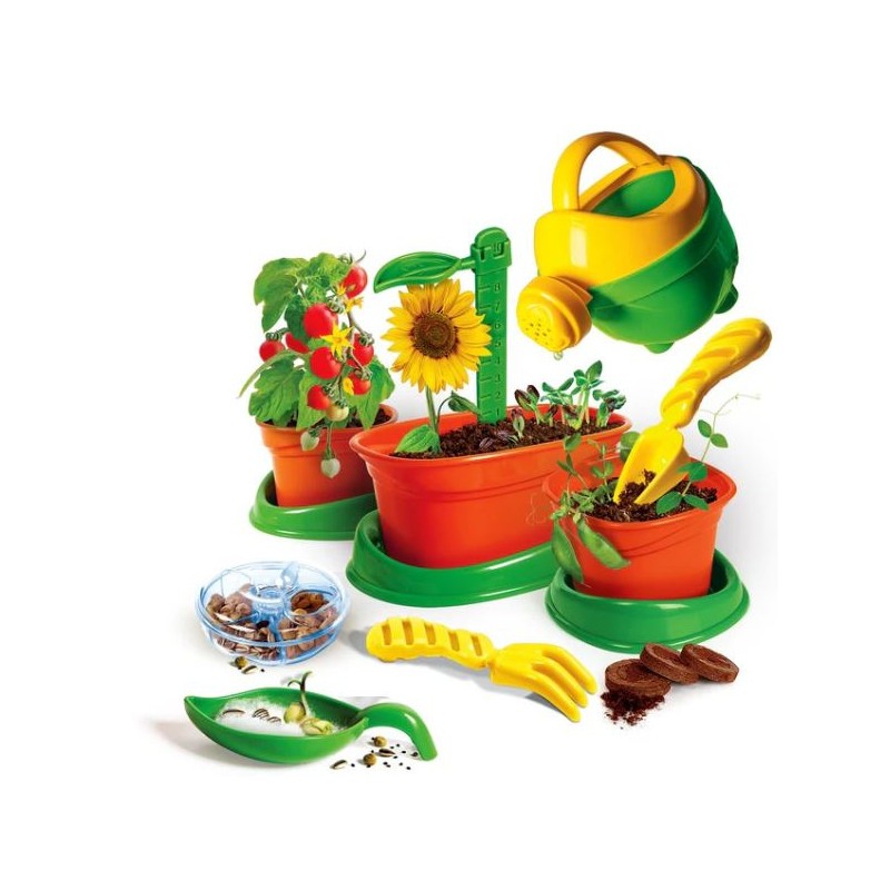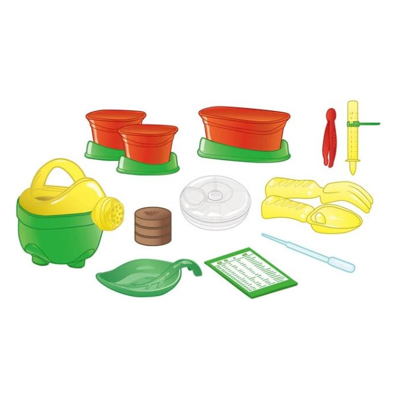 Un coffret complet pour initier les jeunes au monde de la botanique. Tout le nécessaire est inclus : pots, arrosoir, râteau, tourbe, graines… pour commencer à jouer immédiatement ! Le manuel illustré guide l’enfant à travers des activités faciles et ludiques. Un laboratoire conçu pour encourager les enfants à être autonomes lors des différentes expériences…