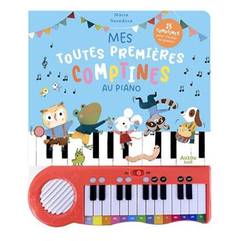 Un nouveau livre piano avec 15 comptines à chanter et rejouer au piano !Munie d’un piano intégré, la collection propose des comptines adaptées aux tout-petits qui souhaitent découvrir le piano.Sur la page de gauche, le texte de la comptine accompagné d’une illustration ; sur la page de droite, la portée musicale transpose les notes grâce à un code couleurs très simple.