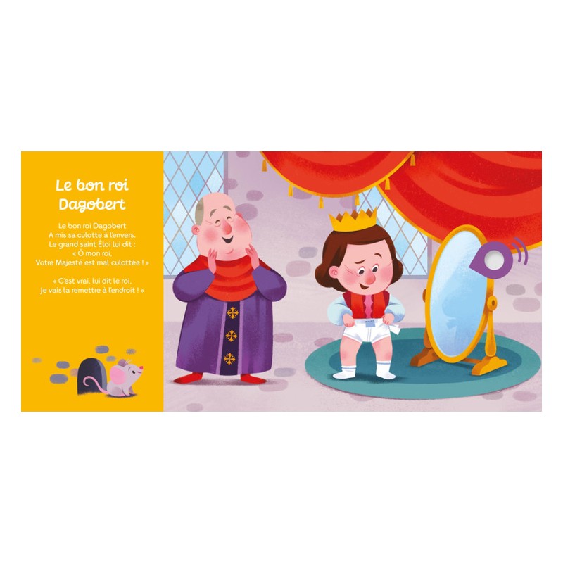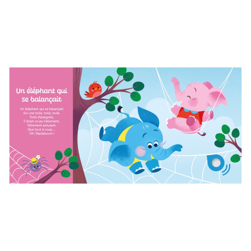 Un livre sonore pour s’initier au rythme tout en rigolant et en s’amusant !Avec des textes courts et faciles à mémoriser.6 puces sonores d’une belle qualité auditives et d’une longévité exceptionnelle !6 comptines pour rigoler :* J’ai un gros nez rouge* Un éléphant qui se balançait* Le bon roi Dagobert* Sardine à l’huile* Maman les p’tits bateaux* Un petit cochon Dimensions : L 16.2 × H 16.4 × P 2.3