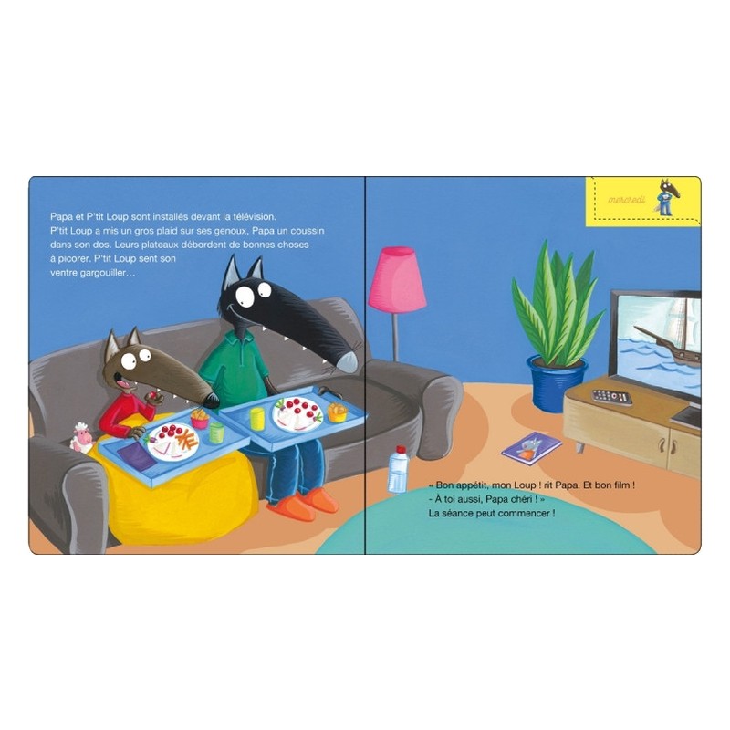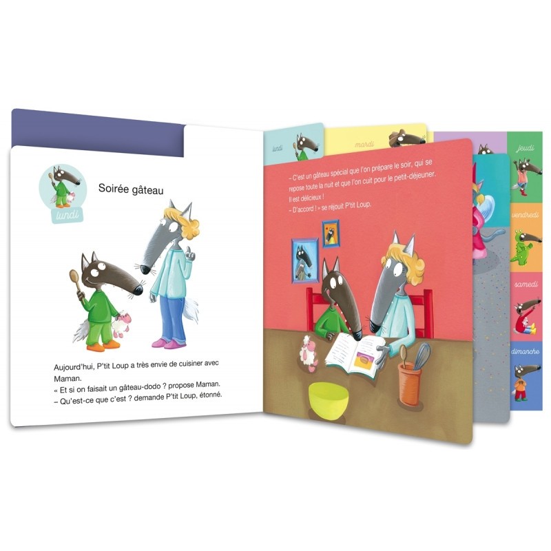 7 belles histoires pour tous les dodos de la semaine ! Lundi, il fait un gâteau avec Maman ; mardi, c’est carnaval, tout le monde est déguisé ; mercredi, c’est soirée télé avec Papa devant un film de pirates ; jeudi, il part faire du camping, une soirée sous la tente ; vendredi, c’est super soirée pyjama avec Louka et Gaspard ; samedi, P’tit Loup va chez Papili et Mamili, à la découverte des étoiles ; et dimanche, toute la famille joue aux jeux de société. Contenu : Tout-carton Dimensions : 22,5 x 22,5 cm
