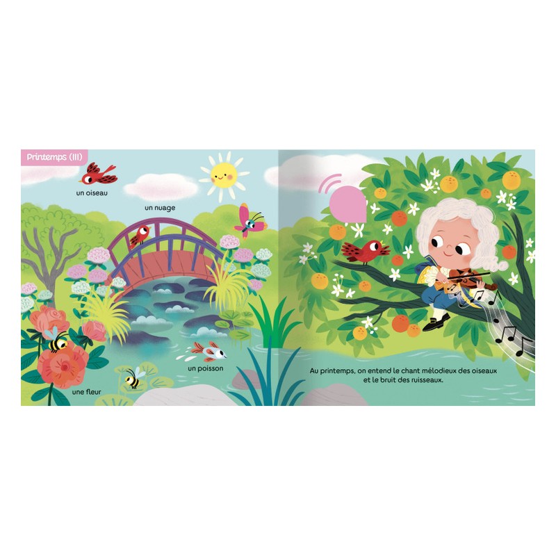 6 extraits sonores des Quatre saisons :- Printemps I- Printemps III- Été III- Automne I- Hiver III- Automne IIIL’ouvrage contient un bouton on/off (pour durer plus longtemps) et des piles AAA (faciles à changer) !