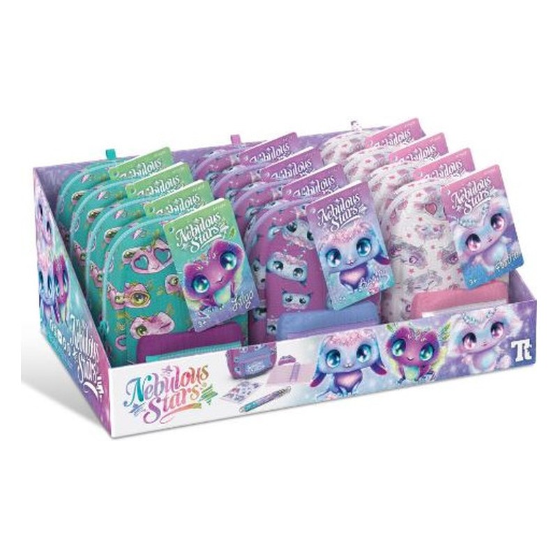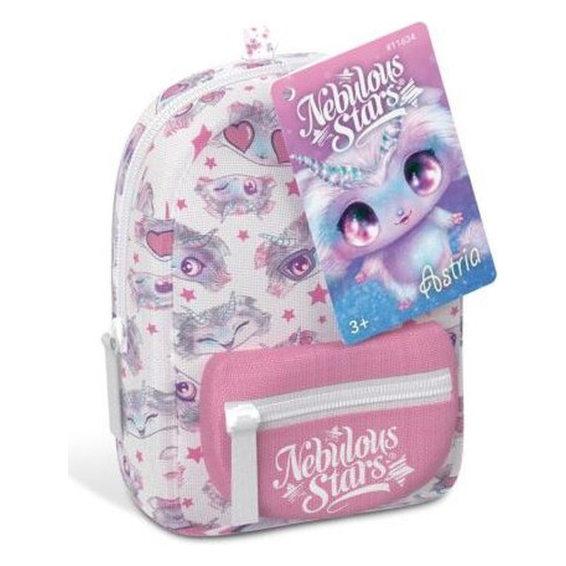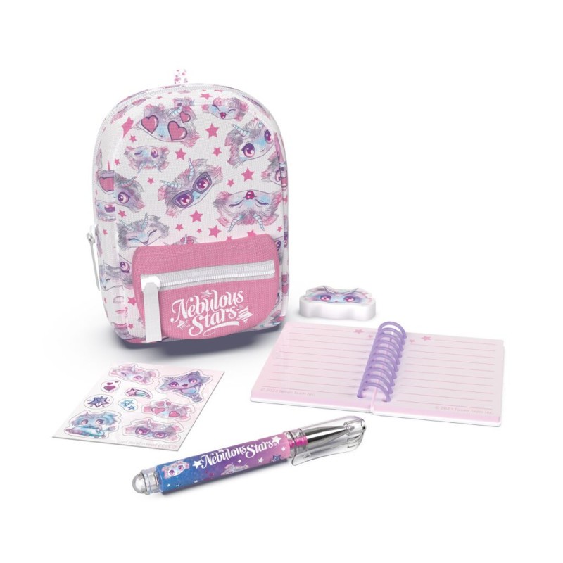 Ensemble de mini sac à dos Nebulous Stars. Dimensions : 9 x 6 x 11 cm. Contenu – sac à dos, pendentif, carnet ligné, stylo, gomme, autocollants.