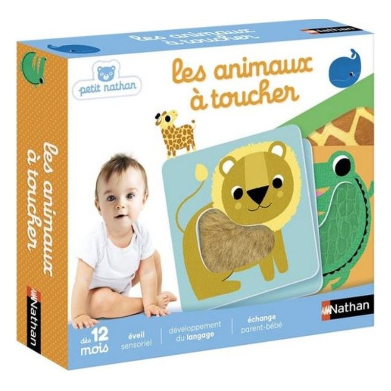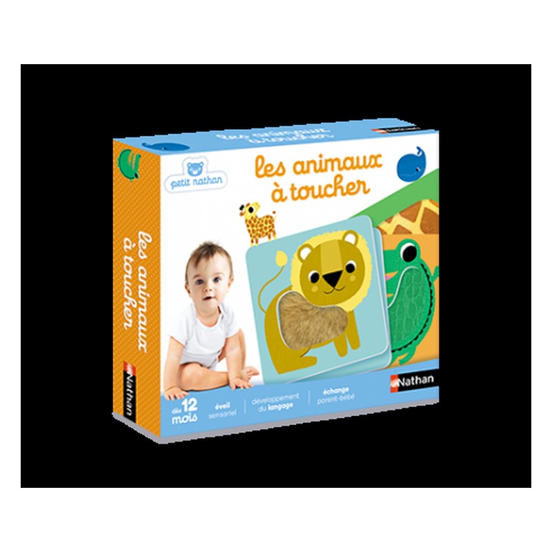 Des expériences sensorielles pour faire découvrir à bébé son environnement. Le petit explorateur pourra toucher, caresser, manipuler. Un jeu à partager avec les parents.Toucher, caresser, manipuler : le bébé découvre les animaux par des expériences multi-sensorielles. Une activité motrice, de mémoire et d’association. Un jeu à partager avec les parents, qui sollicite l’attention conjointe. Contenu 12 grandes cartes (10 x 10 cm) dont 6 avec une matière à toucher.