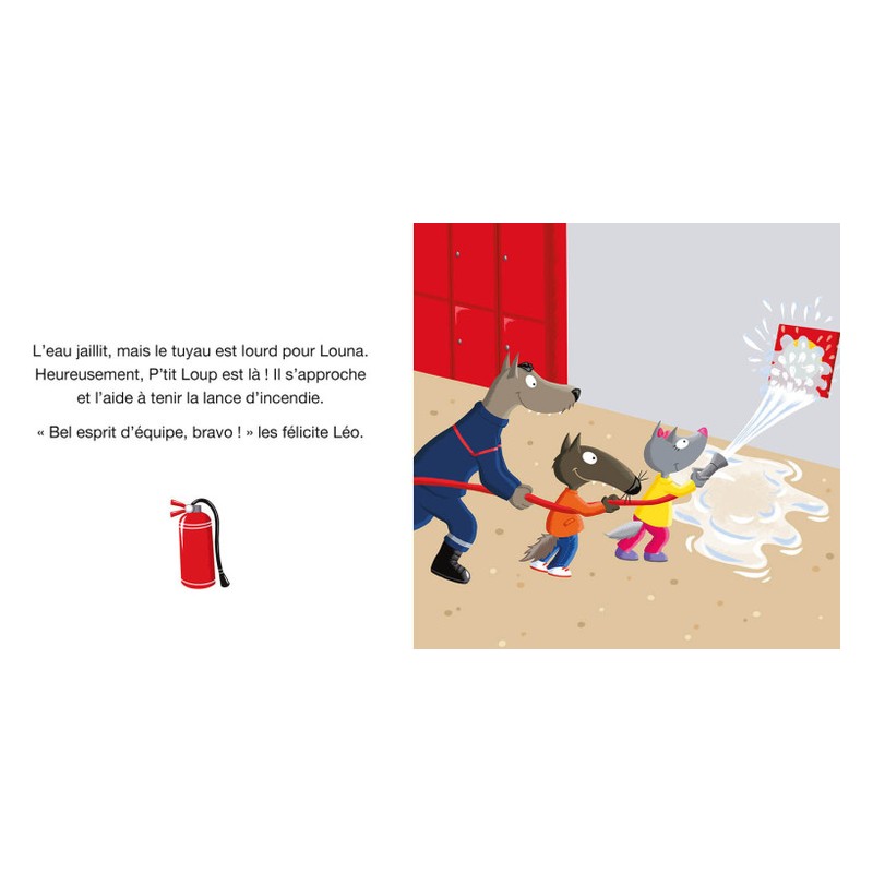 P’tit Loup visite une caserne de pompiers pour la première fois ! Il est accompagné par un pompier qui lui montre les camions, les uniformes, etc. P’tit Loup est fasciné ! Dimensions : L 16.8 × H 16.9 × P 1.1