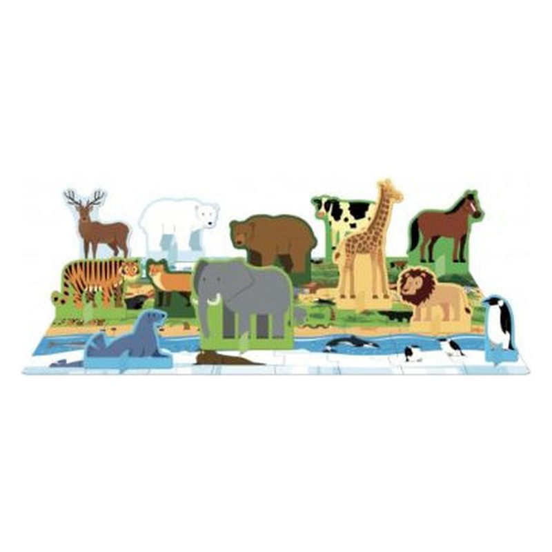 Des pôles aux savanes chaudes en passant par les forêts tropicales luxuriantes, le monde animal est riche en espèces de toutes sortes : feuillette le livre, construis le puzzle et apprends à reconnaître les nombreuses créatures qui peuplent notre planète ! Contenu Un puzzle de 40 pièces et un livre de 10 pages Dimensions : 18,5 x 18,5 x 9 cm