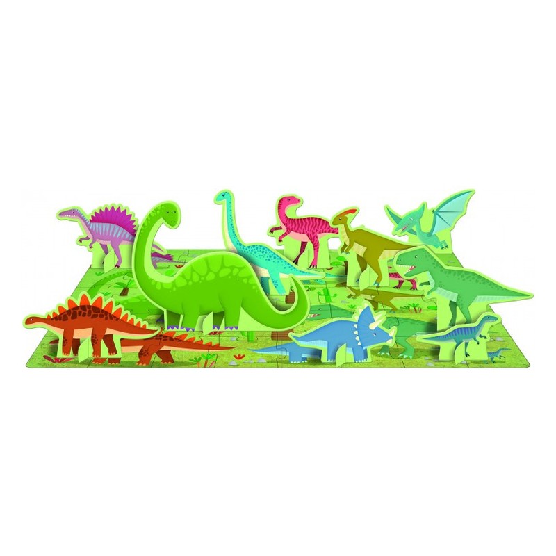 Il y a des millions d’années, la Terre était peuplée d’énormes reptiles, certains redoutables et d’autres plus apprivoisés : les dinosaures. Apprends à les connaître tous et à reconnaître et associer les éléments et les mots ! Une boîte aux détails irisés contenant un livre de 10 pages, un puzzle de 40 pièces et 10 dinosaures à assembler età placer sur le puzzle, pour apprendre à reconnaître et à associer les éléments et les mots. Contenu Puzzle de 40 pièces (42 x 28 cm), 10 dinosaures silhouettes et un livre de 10 pages Dimensions : 18,5 x 18,5 x 9 cm