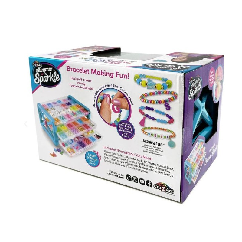 Cra-Z-Art Shimmer ‘N Sparkle Ultimate Bead Studio (17355). Suivez le manuel d’instructions simple pour fabriquer des bracelets. Alors amusez-vous à en créer bien plus dans votre propre style ! Comprend plus de 2000 perles tendance ! Il comprend des ABC, des poneys tendance, des perles dorées et brillantes, des breloques et des couleurs tendance !…