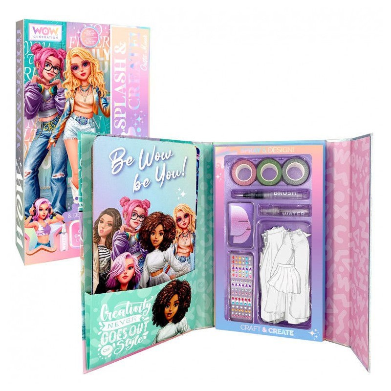 Coffret Spray & Design, 100 pièces Plongez dans l’univers de la mode avec notre coffret innovant Splash & Create de Wow Generation. Grâce à cette technologie innovante, transformez vos vêtements noirs et blancs en vêtements colorés d’un simple jet d’eau et créez des looks éblouissants en seulement trois étapes. – Placez des vêtements sur le corps de la fille Wow pour créer un motif noir et blanc. – Utilisez le jet d’eau pour voir les couleurs prendre vie sur vos vêtements, révélant votre création dans toute sa splendeur. – Décorez la feuille avec nos pierres décoratives pour ajouter du style et de l’éclat. – Une fois les motifs prêts et secs, vous pouvez créer de nouveaux looks à l’infini, Nos autocollants pour vêtements sont réutilisables, vous permettant ainsi d’expérimenter la mode sans restriction. Avec Splash and Create, la mode devient une aventure passionnante et créative : laissez libre cours à votre imagination et sublimez vos créations avec Wow Generation. Dimensions : 17,7 x 30,5 x 4 cm